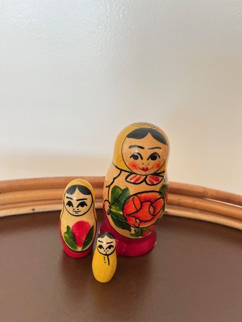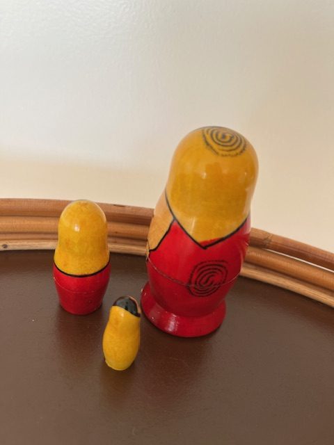 Flotte babushka dukker. Har fået fortalt at de stammer fra Rusland, men hvordan man lige kan være sikker på det, ved jeg ikke. De er i flot stand.