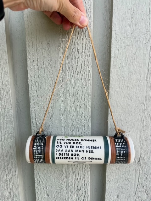 Designet af Aksel Sigvald Nielsen. Rigtig fin og sjov ting der kan hænges på døren ved fx sommerhuset. I fin stand, trænger kun til rengøring.