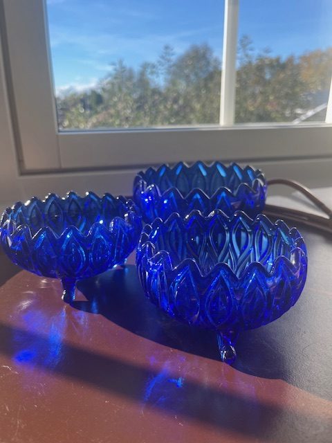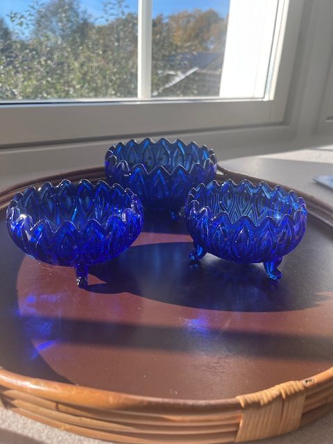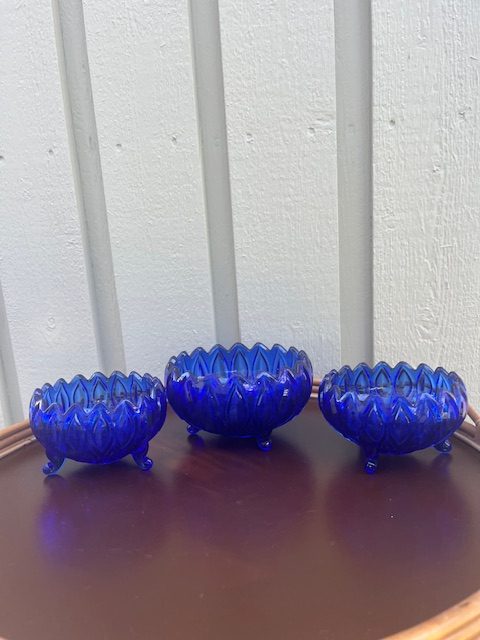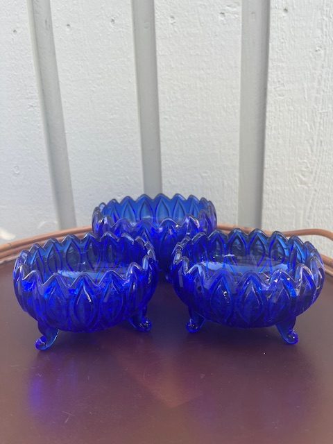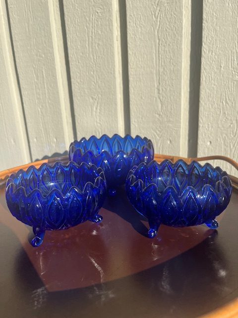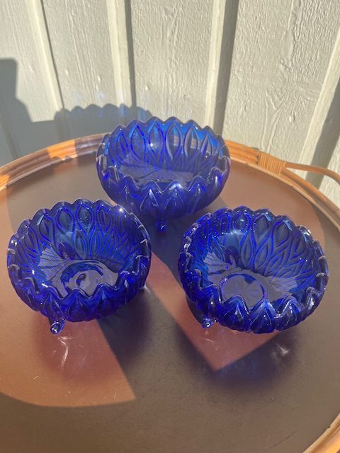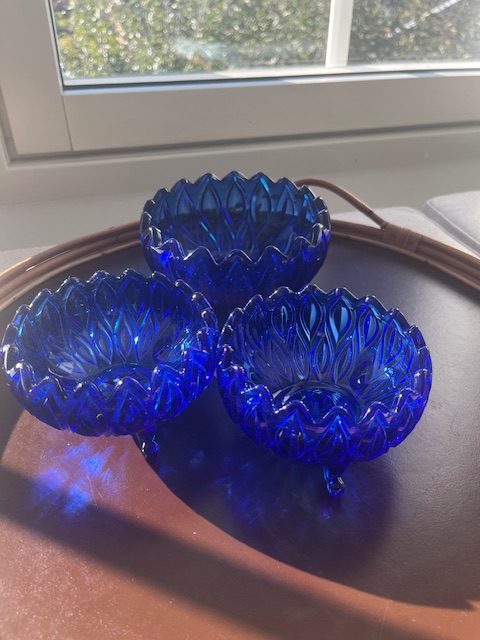 Her køber du samlet 3 flotte skåle med 3 ben i presset glas fra Fyns Glasværk.