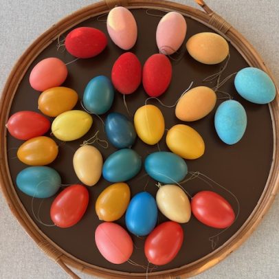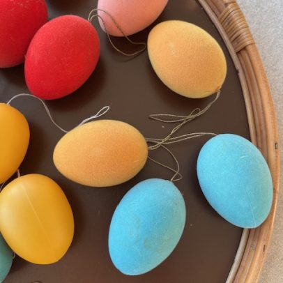Gammel pynte hare lavet i plastik, den måler i længden ca 9 cm og i højden ca 9 cm. Den er super charmerende, sælges med patina.