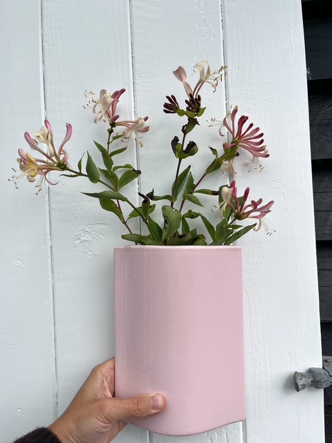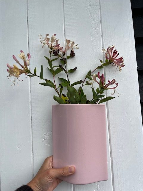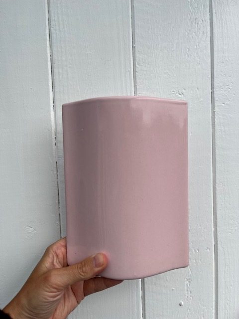 Den ligner en svensk Höganäs vase, den er i fin stand og måler 19 cm i højden og 14 cm i bredden.