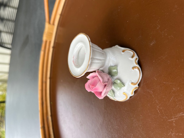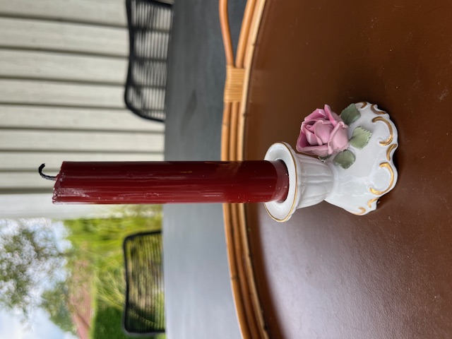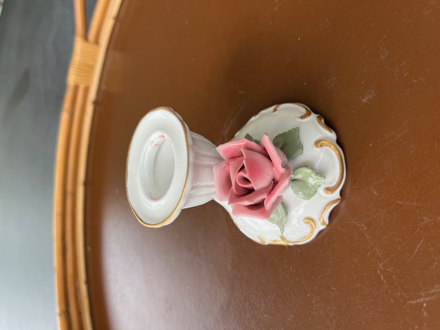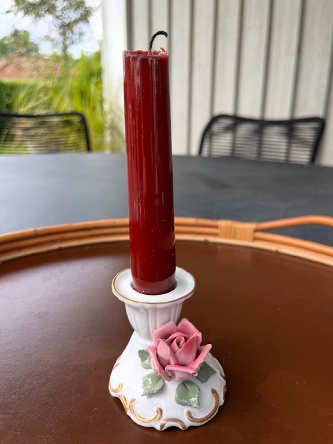 Stagen er til kronelys og måler 5,5 cm i højden og 6,5 cm i bredden. Stagen er i pæn stand.