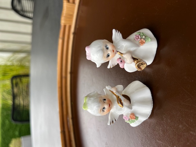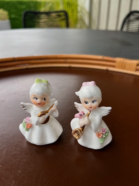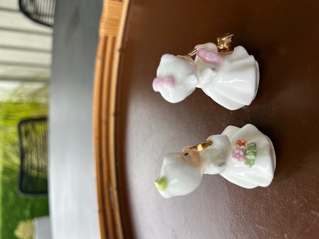 Fine engle i porcelæn, de er i fin stand og måler 5 cm i højden.