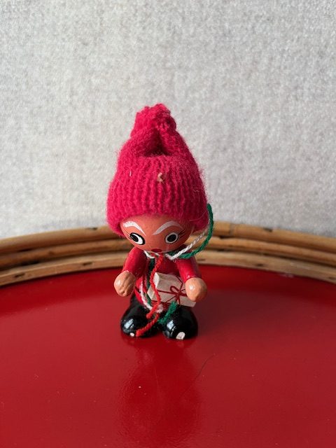 Gammel nisse med pakke.