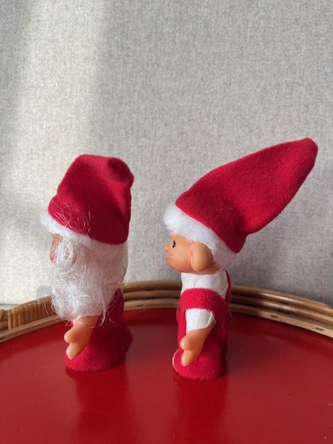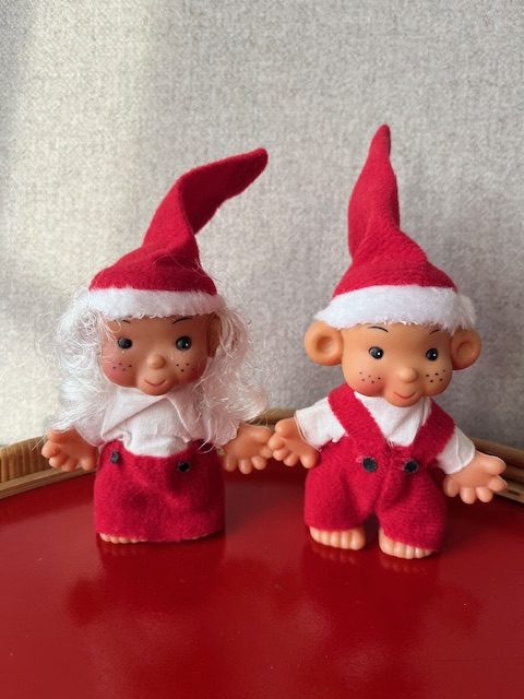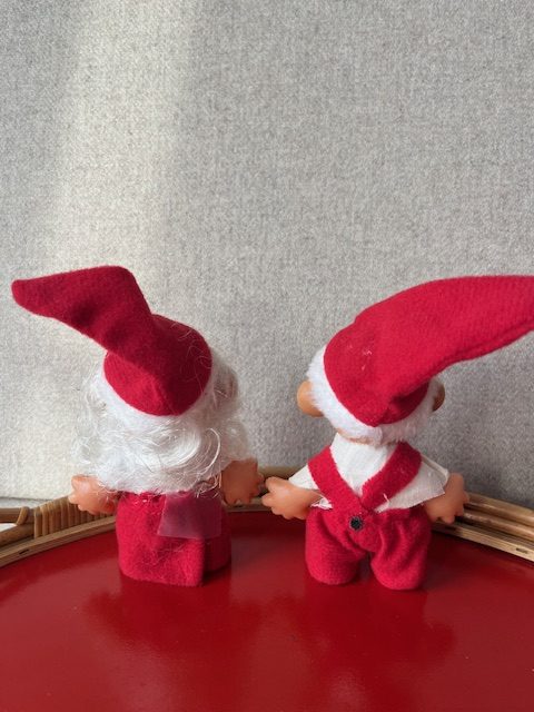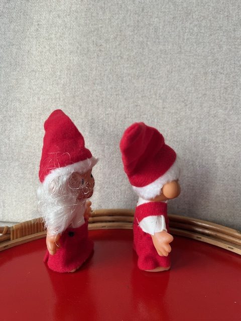 Gammelt nissepar, nederdelen på pigen sidder løs. De måler ca. 10,5 cm.